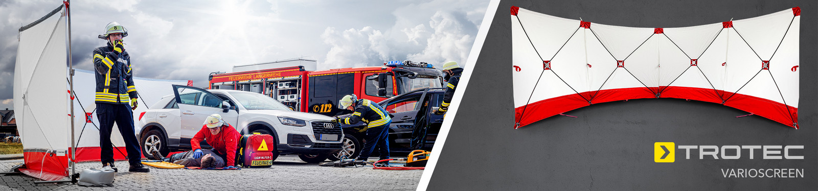 Whether you’re working with the fire brigade, police, rescue services or the Federal Agency for Technical Relief (THW) – when you’re on an emergency deployment, often every second counts. Unfortunately it is more and more often the case that emergency personnel on site are kept from doing their work or obstructed in carrying out their duties by shameless rubberneckers. Curious onlookers cause considerable damage by obstructing rescue operations and their progress. Using the expressly set up VarioScreen from Trotec, you can protect the victims against unnecessary exposure and simultaneously ensure that your team is shielded and can completely focus on their work.
